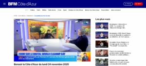 BFM Côte d’Azur présente un focus Environnement sur le Digital Cleanup Day lors de l’émission du lundi 24 novembre 2025 avec Guillaume Gallon, chef de projet à l’Institut du Numérique Responsable (co-porteur du Digital Cleanup Day).