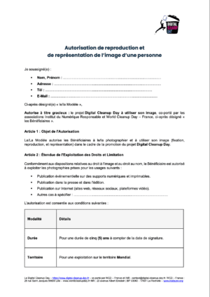 À faire signer à vos participants majeurs dans le cas de prise de photos ou vidéos lors de votre événement.