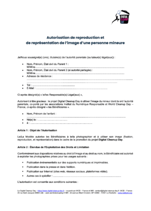 À faire signer aux parents de vos participants mineurs dans le cas de prise de photos ou vidéos lors de votre événement.